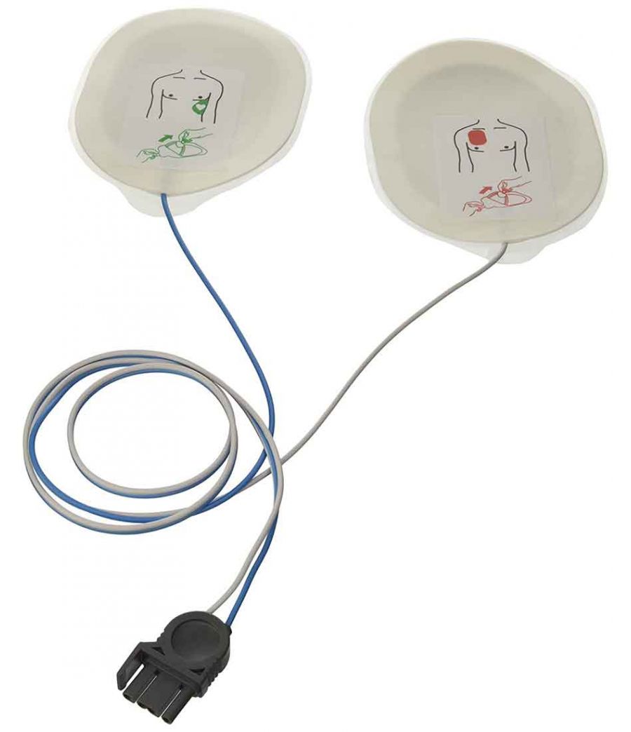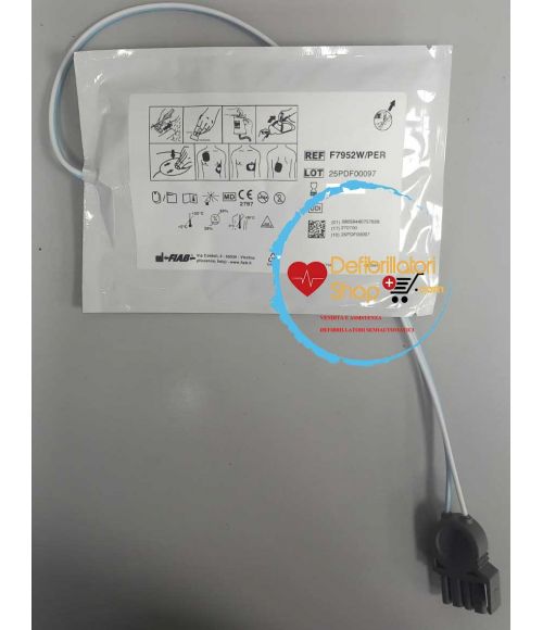 Tipo elettrodi: Elettrodi monouso per defibrillazione, pregellati, autoadesivi e senza lattice.